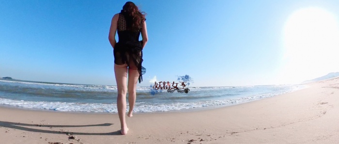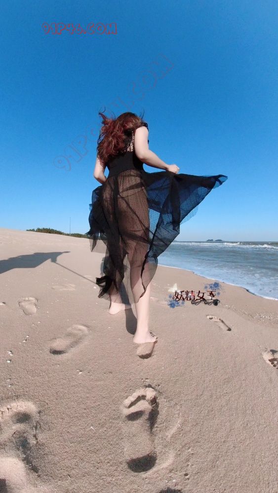 第二天早上全景相机拍照,挑选几张沙滩慢步照片,相机在裙底下撞击私密部位视频过于刺激,犹如现场直播一样,推特发布部分短片